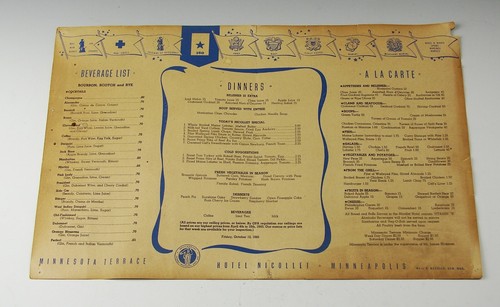 Antique Vtg Restaurant Menu Minnesota Terrace Hotel Nicollet Minneapolis Mn Food Ebay