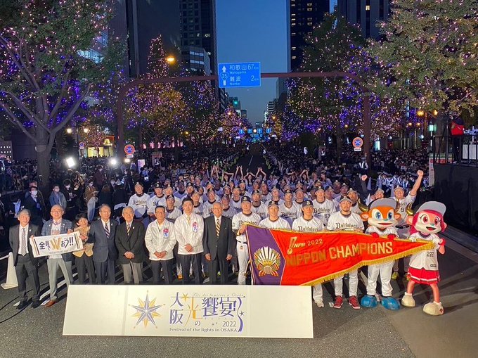 . 18 hours agoナニワが燃えた ヤクルトとの日本シリーズを制して26年ぶりに日本一に輝いたオリックスが3日大阪御堂筋で優勝パレードを実施した. 17 hours agorss オリックス史上初御堂筋ライトアップパレードに中嶋監督大喜びここでできたのは非常に 2022年11月3日21時11分. 19 hours agoオリックスの御堂筋パレード警備200人増員で1280人 韓国雑踏事故受け厳重体制に.